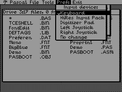 One of the unique features of the AGS package was the ability to work with almost any input device. It could work with not only the keyboard and joysticks, but with the CoCoMax mouse pack (the HiRes Input Pack on the menu) and the Tandy X-Pad. The 1.6 version added support for the Tandy version of the HiRes input mouse device. |
