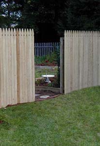 | Here is the view towards the front. Where the opening is now there will be a gate with an archway. The ivy to the left of the opening is intended to climb over the top. Through the opening you can see one of our Rose of Sharon plants, and the start of our front hedge. | ![]() |