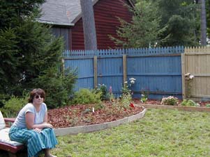 The descriptions here are by Ken - when Martha gets a chance she'll fill me in on better names than "the pink thing". Most of the photographs are from 2000. The fence I'm standing by is now white, and it's amazing how much some of the plants have grown in two years. |